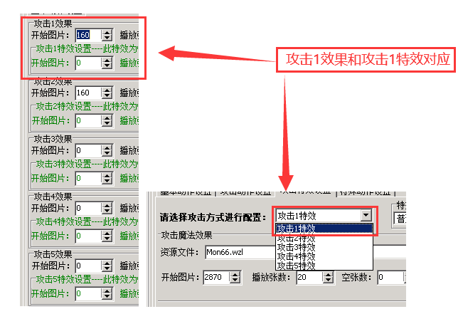 B)攻击效果2-5图片设置方法与攻击效果1图片设置方法相同;