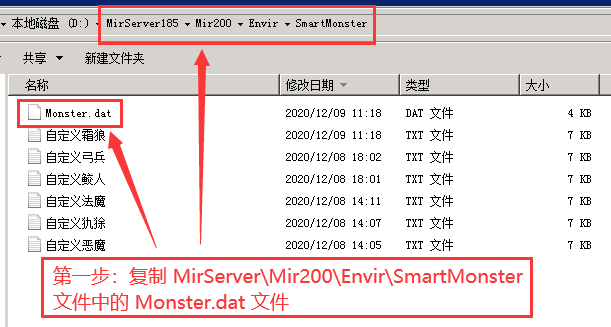 5)正常使用时,需将 服务端MirServer\Mir200\Envir\SmartMonster 文件夹下的Monster.dat 复制,替换登录器配置器\补丁文件夹\data文件夹