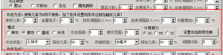 8)设置攻击附带效果:包括红毒、绿都、麻痹、蛛网、冰冻等状态;