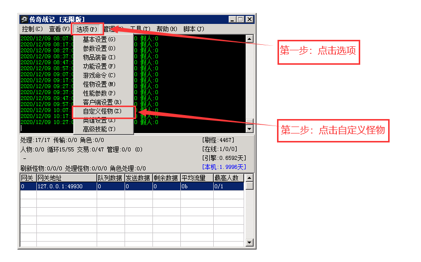 1)点击M2选项,点击自定义怪物,进入自定义怪物设置选项;