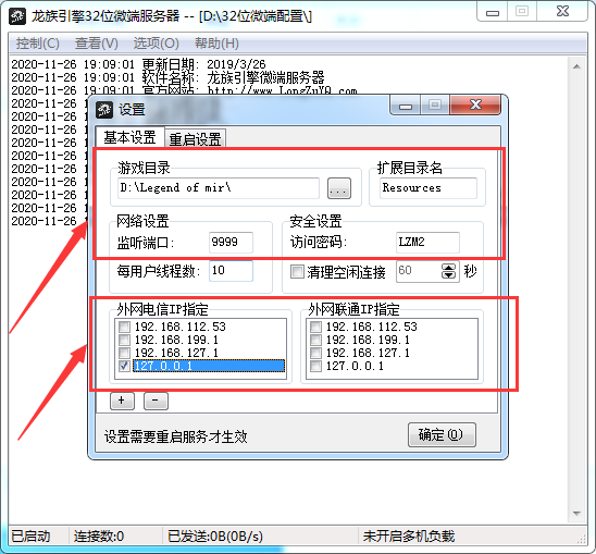 步骤三:完成基本设置,重启微端服务器并进行文件密码设置