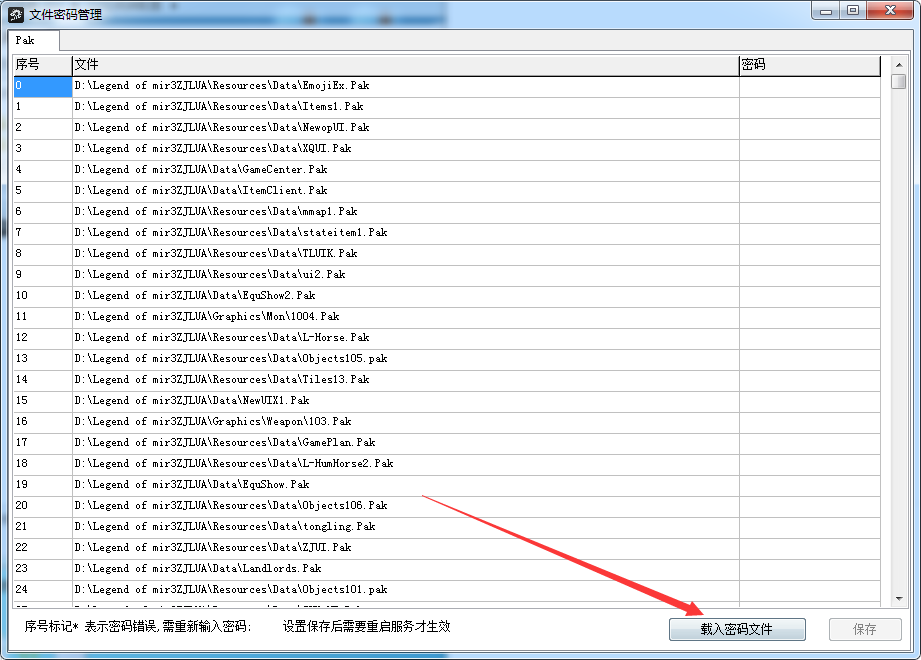 步骤四:导入微端客服端对应PAK.txt补丁密码文件