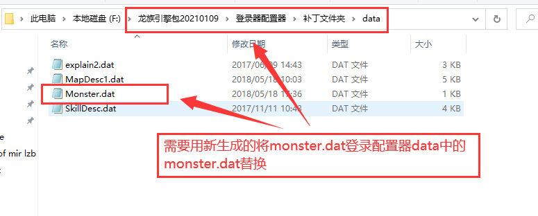 5)正常使用时,需将 服务端MirServer\Mir200\Envir\SmartMonster 文件夹下的Monster.dat 复制,替换登录器配置器\补丁文件夹\data文件夹