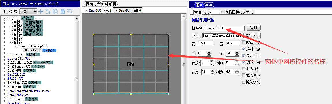 1、使用GUI编辑器在bag.gui里面创建一个名字为DBurstItem的窗口